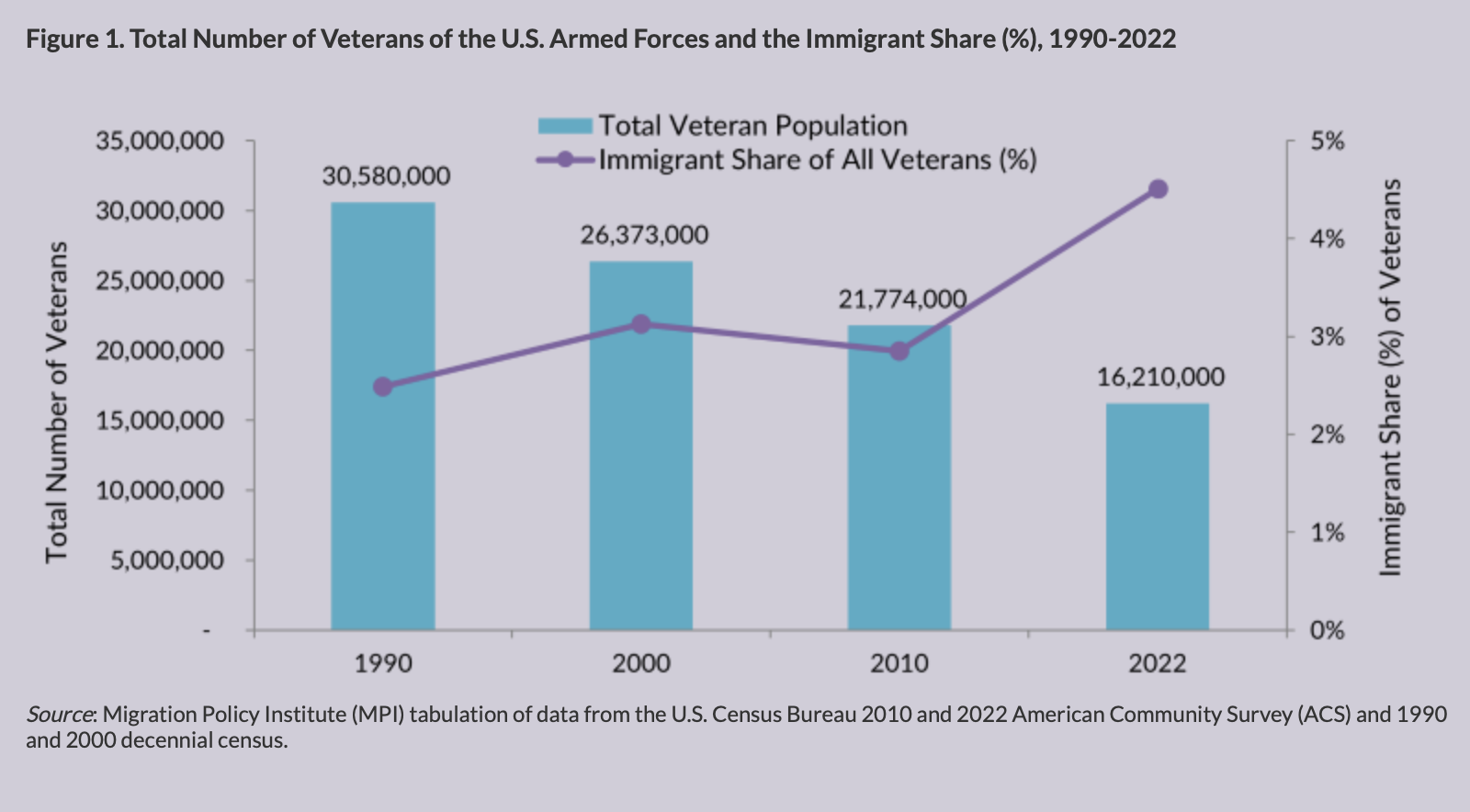 ICE’s brutal campaign denigrates the heroism of immigrant service members, whose contributions to the U.S. military date back to the founding of our nation. In fact, while overall recruiting numbers shift over time, “the foreign born have been a constant presence in the U.S. armed forces,” the Migration Policy Institute said last year. “Hundreds of thousands of immigrants pledged to defend the United States with their lives in the Civil War, both World Wars, and conflicts like those in Vietnam, Afghanistan and Iraq,” FWD.us said in a 2022 report. During the American Civil War, more than 20% of Union soldiers were also foreign-born, mostly from Germany and Ireland. By the time the U.S. was involved in World War I, approximately half a million immigrants were serving in the U.S. military, Bipartisan Policy Center said in 2017. “Foreigners have continued to serve in significant numbers since World War II.” Immigrant veterans now make up a growing share of America’s veteran community – rising from about 2% in 1990 to 4.5% today.